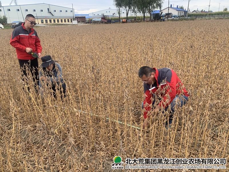 9月27日,在农业生产服务中心副主任张雷的陪同下,建三江区域农服中心、青河镇政府相关工作人员及测产专家一行,共同到创业农场垦地合作示范区地块选取测产点,对示范区玉米和大豆进行统一测产。在测产过程中,工作人员严格按照测产规程,根据旱田田间测产要求,通过现场随机选点,科学取样、详实记录,仔细测量玉米、大豆颗粒数,有序开展农作物测产工作,经过现场测产和分析统计,示范区农民利用大垄密植技术种植的玉米产量与周边农民相比较亩增产100斤以上,大豆亩增产70斤以上。